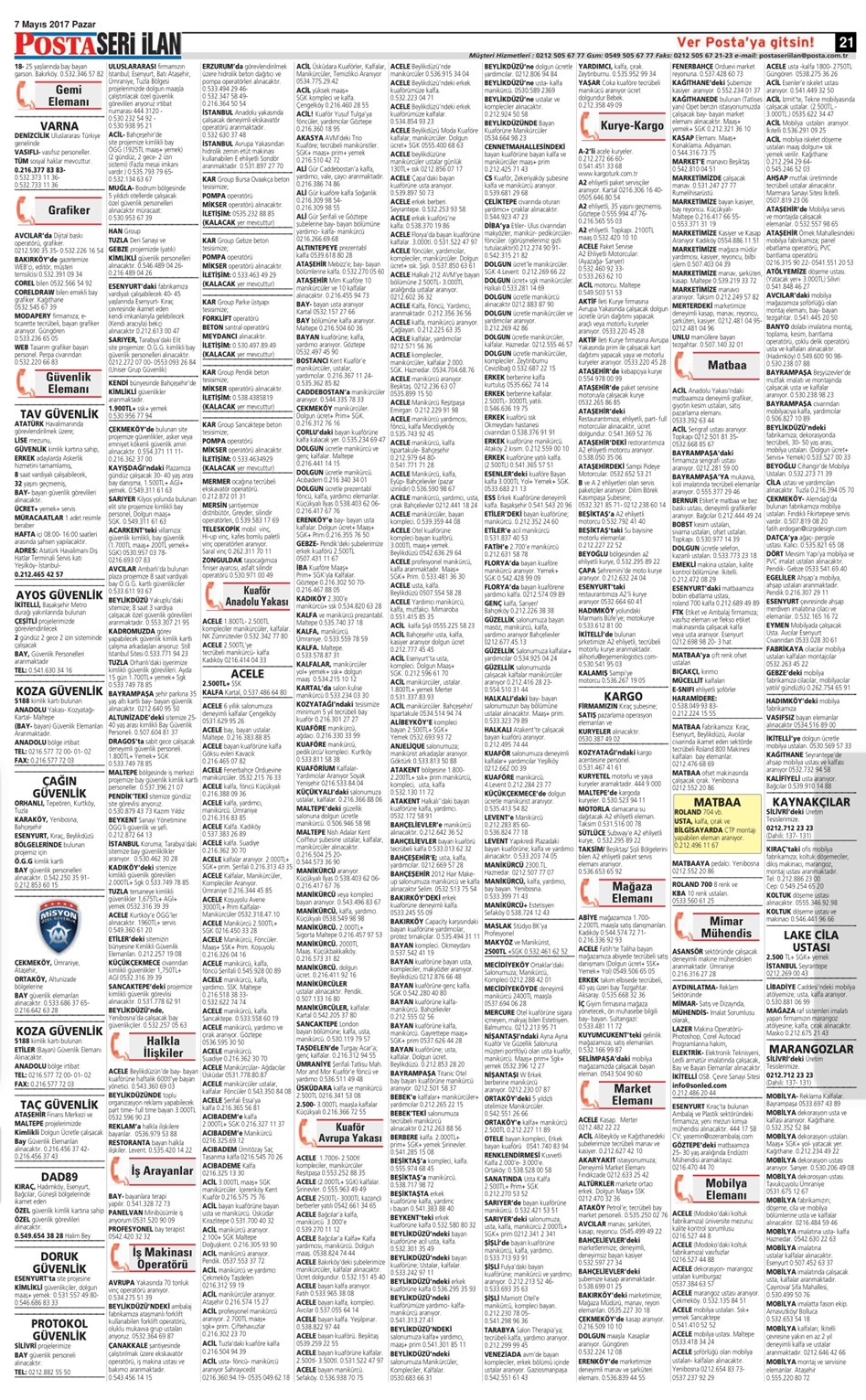 07 Mayıs Pazar 2017 Posta İstanbul Seri İlan Sayfaları