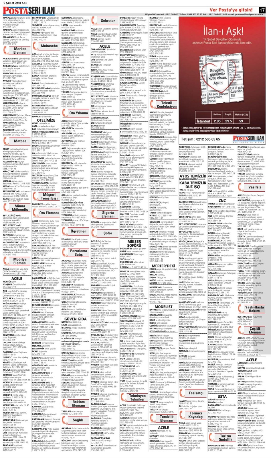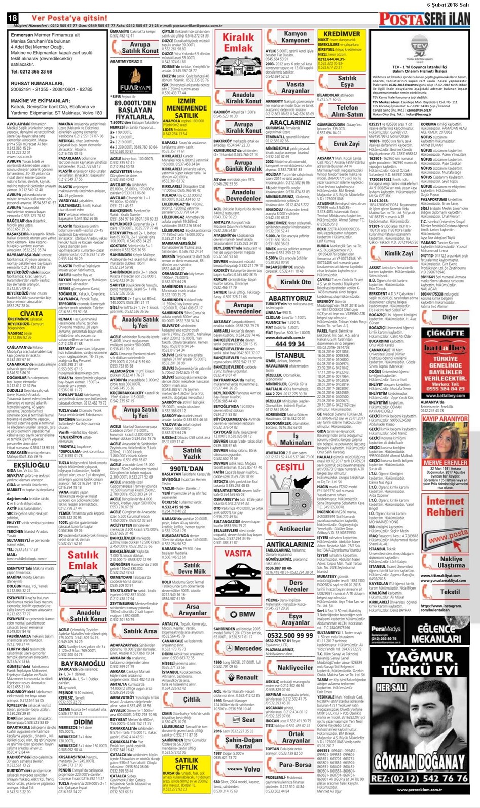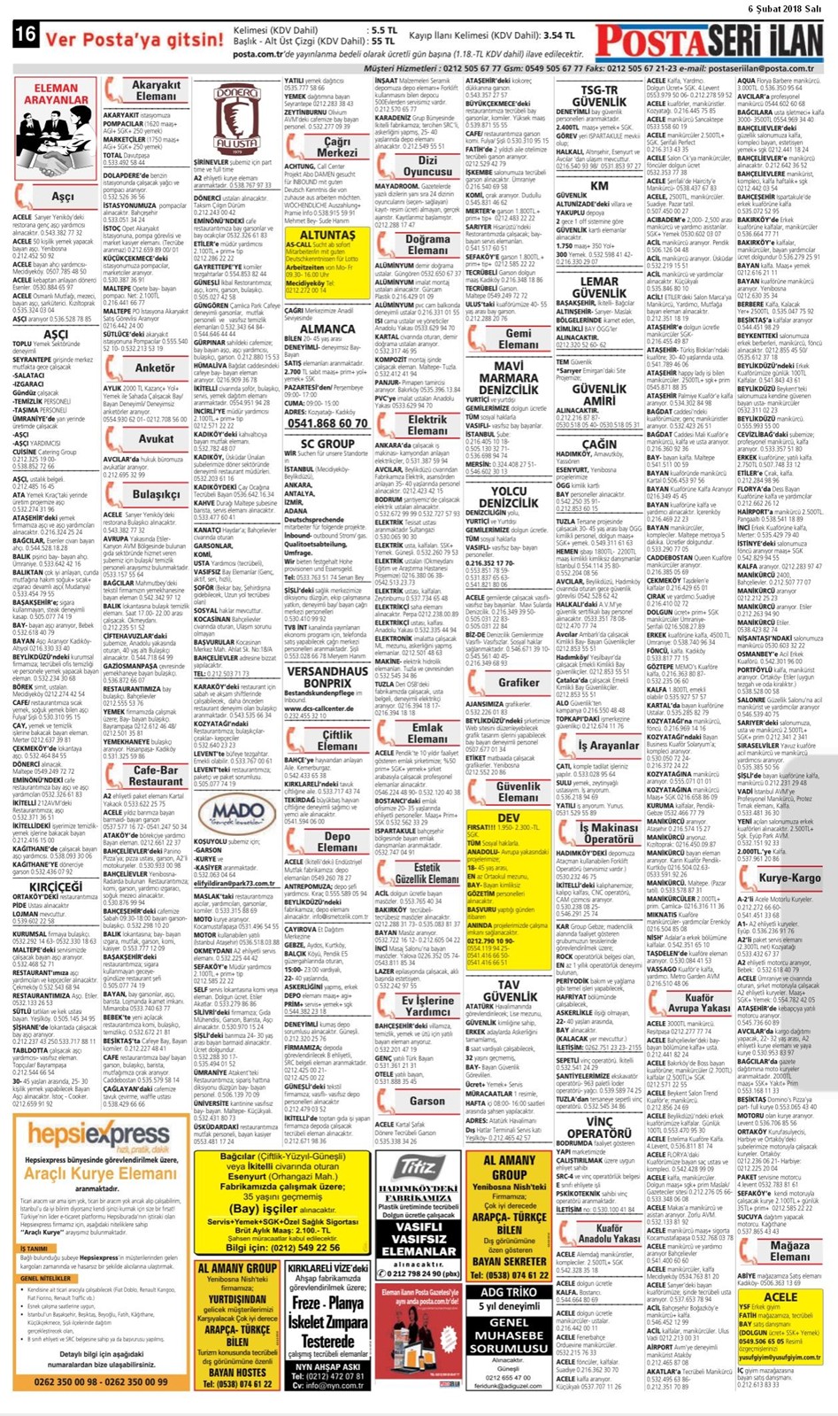06 Şubat 2018 Salı Posta İstanbul Seri İlan Sayfaları Posta İstanbul Baskısı 06.02.2018 -1 Posta İstanbul Baskısı 06.02.2018 -2 Posta İstanbul Baskısı 06.02.2018 -3