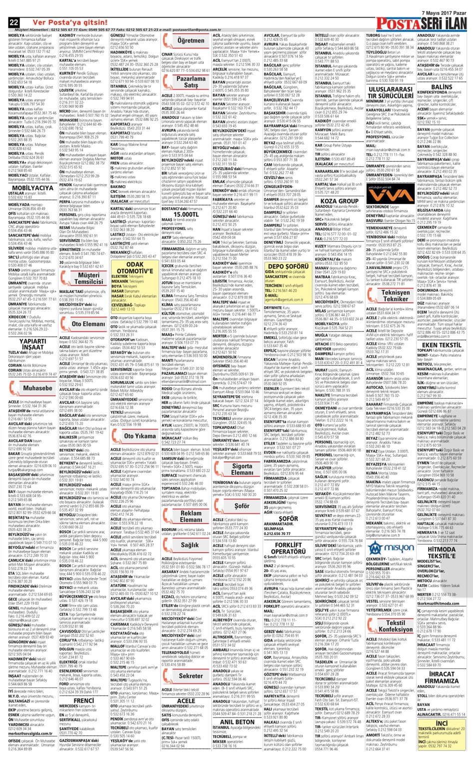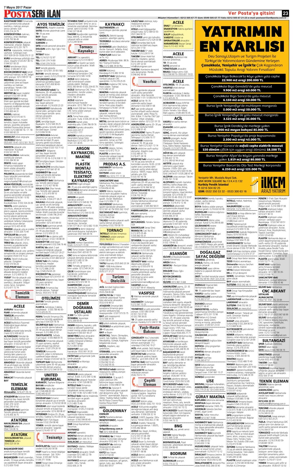 07 Mayıs Pazar 2017 Posta İstanbul Seri İlan Sayfaları