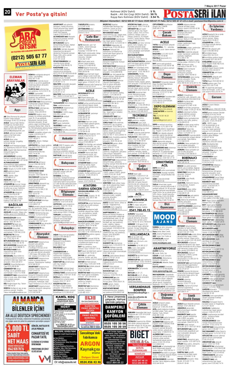 20 Nisan 2017 Posta İstanbul Seri İlan Sayfaları