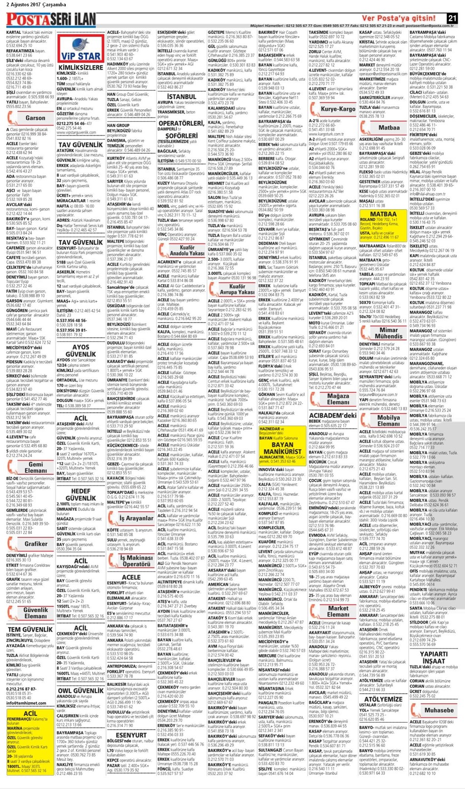 21 Temmuz 2017 Cuma Posta İstanbul Seri İlan Sayfaları