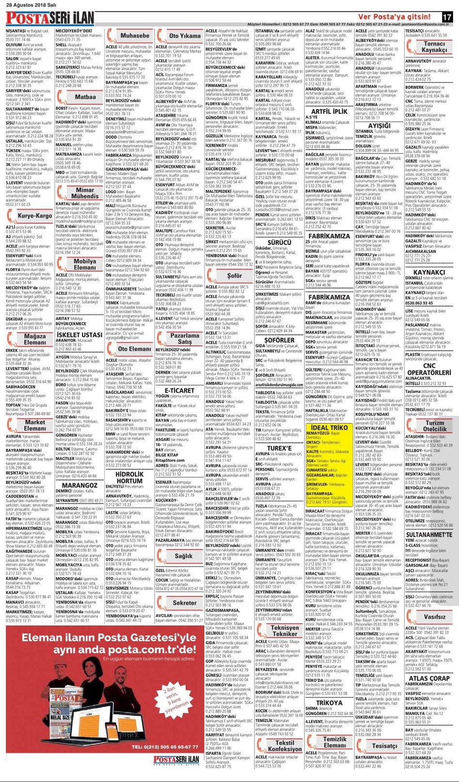 27 Ağustos 2018 Pazartesi Posta İstanbul Baskısı Seri İlan Sayfaları Posta İstanbul Baskısı 27.08.2018-1