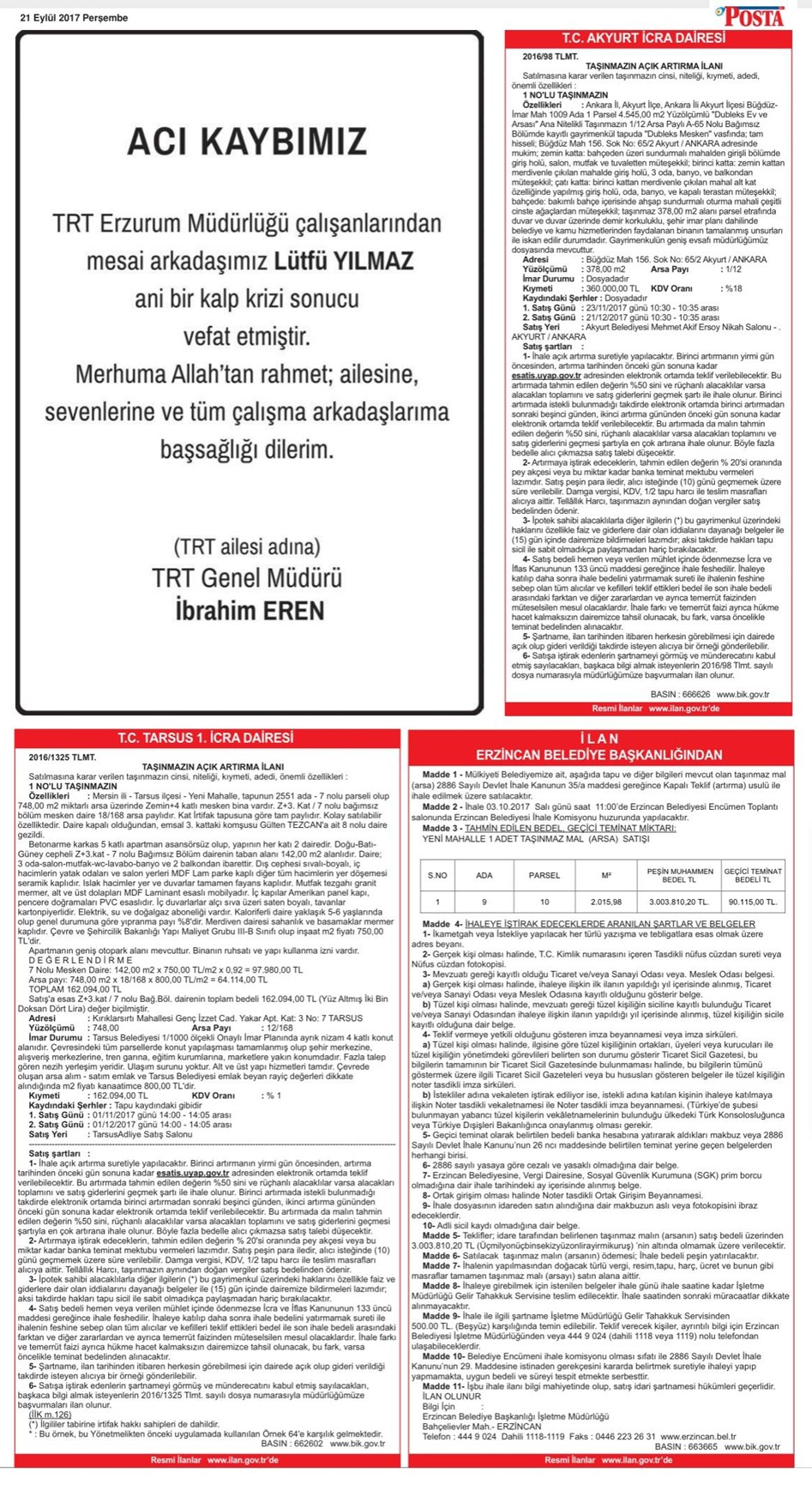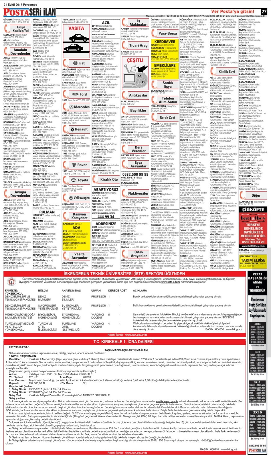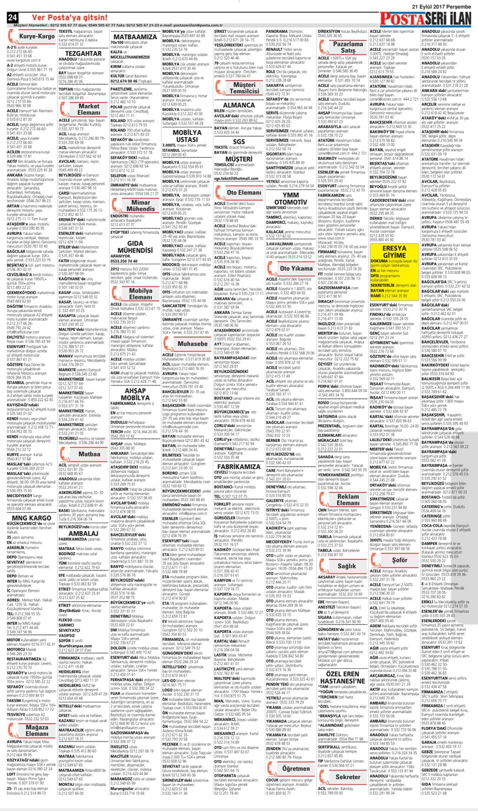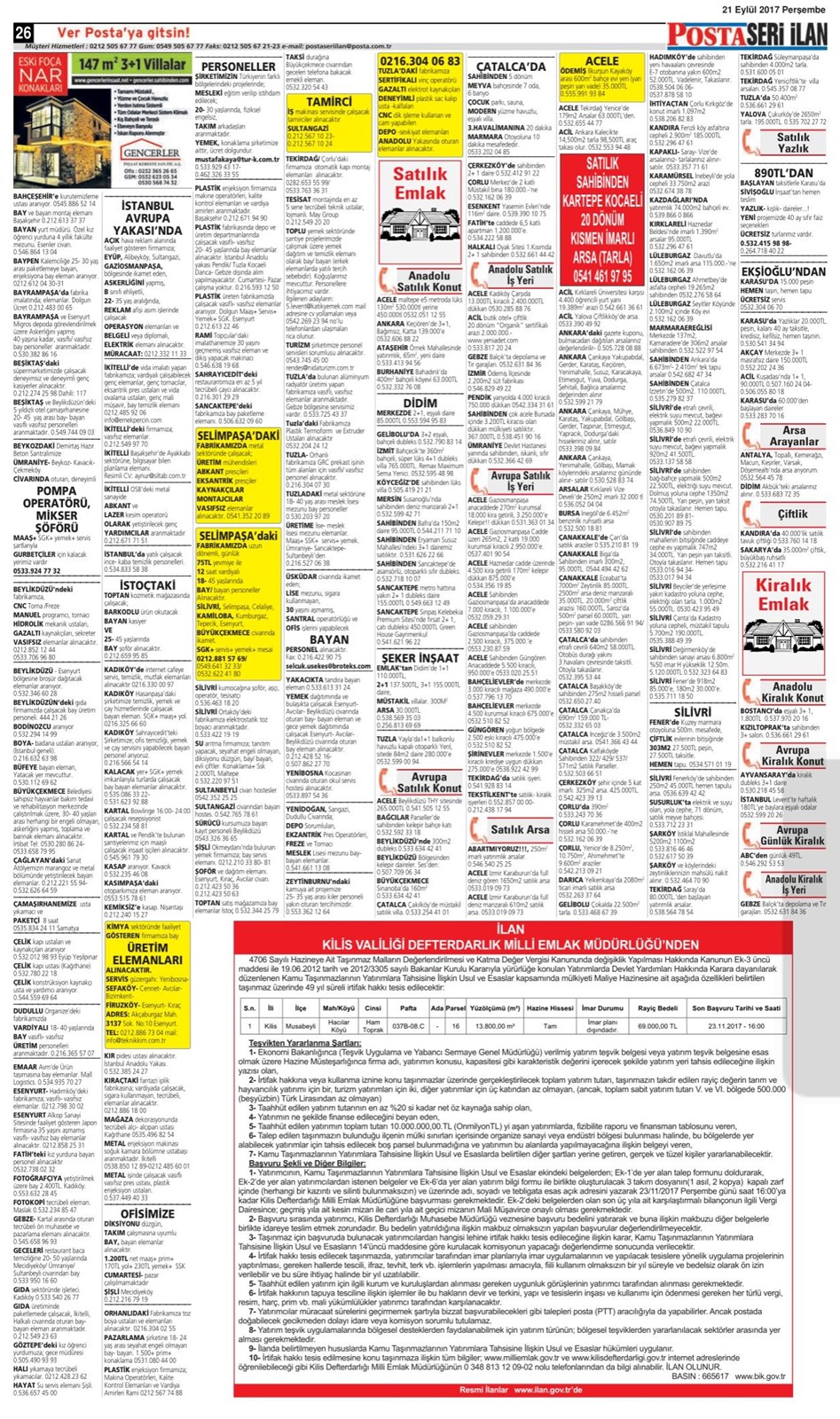 14 Ekim 2017 Posta İstanbul Seri İlan Sayfaları Posta İstanbul Seri İlan Sayfası – 1 Posta İstanbul Seri İlan Sayfası – 2 Posta İstanbul Seri İlan Sayfası – 3 Posta İstanbul Seri İlan Sayfası – 4 Posta İstanbul Seri İlan Sayfası – 5