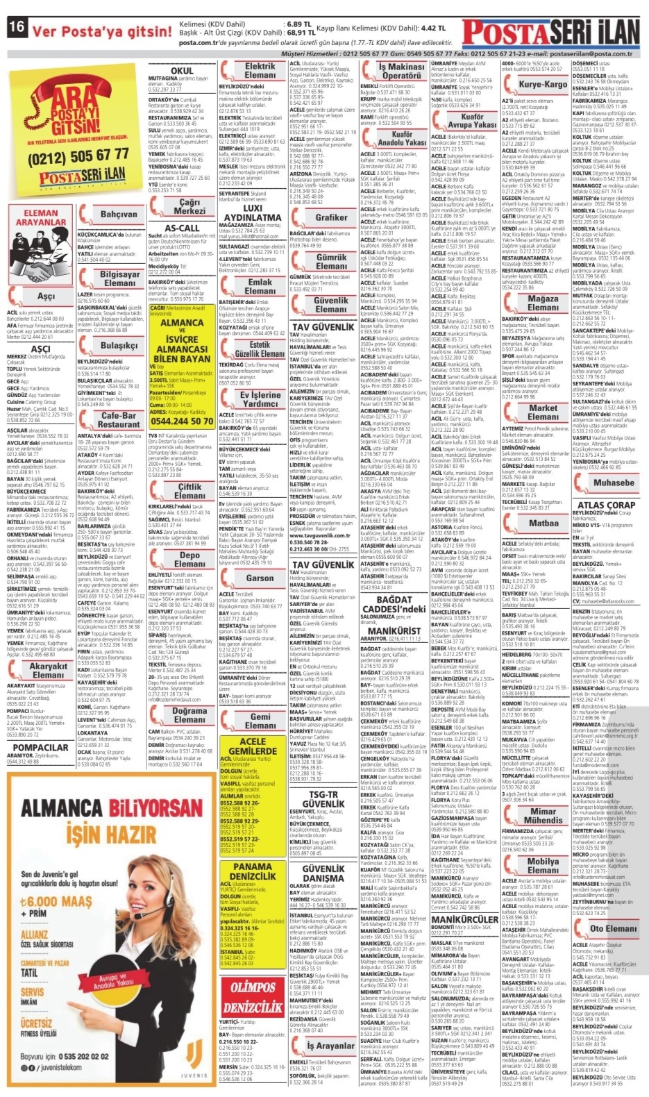 Posted in Bugünkü Posta seri ilanlar, Genel, Posta İlan Sayfaları and tagged , , , , , , , , , , , , , , , , , , , , .