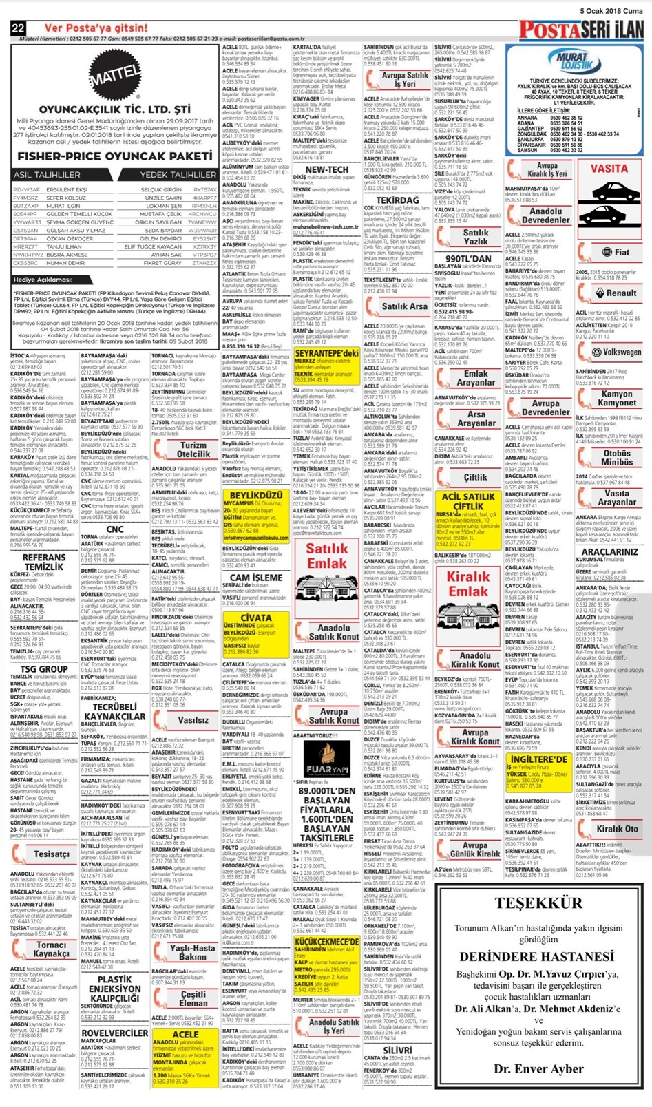 Bugünkü Posta seri ilanlar,