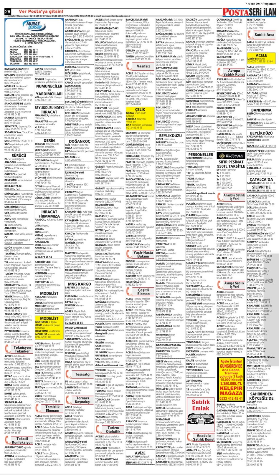 Posta İstanbul Seri İlan Sayfaları 5 – 07.12.2017