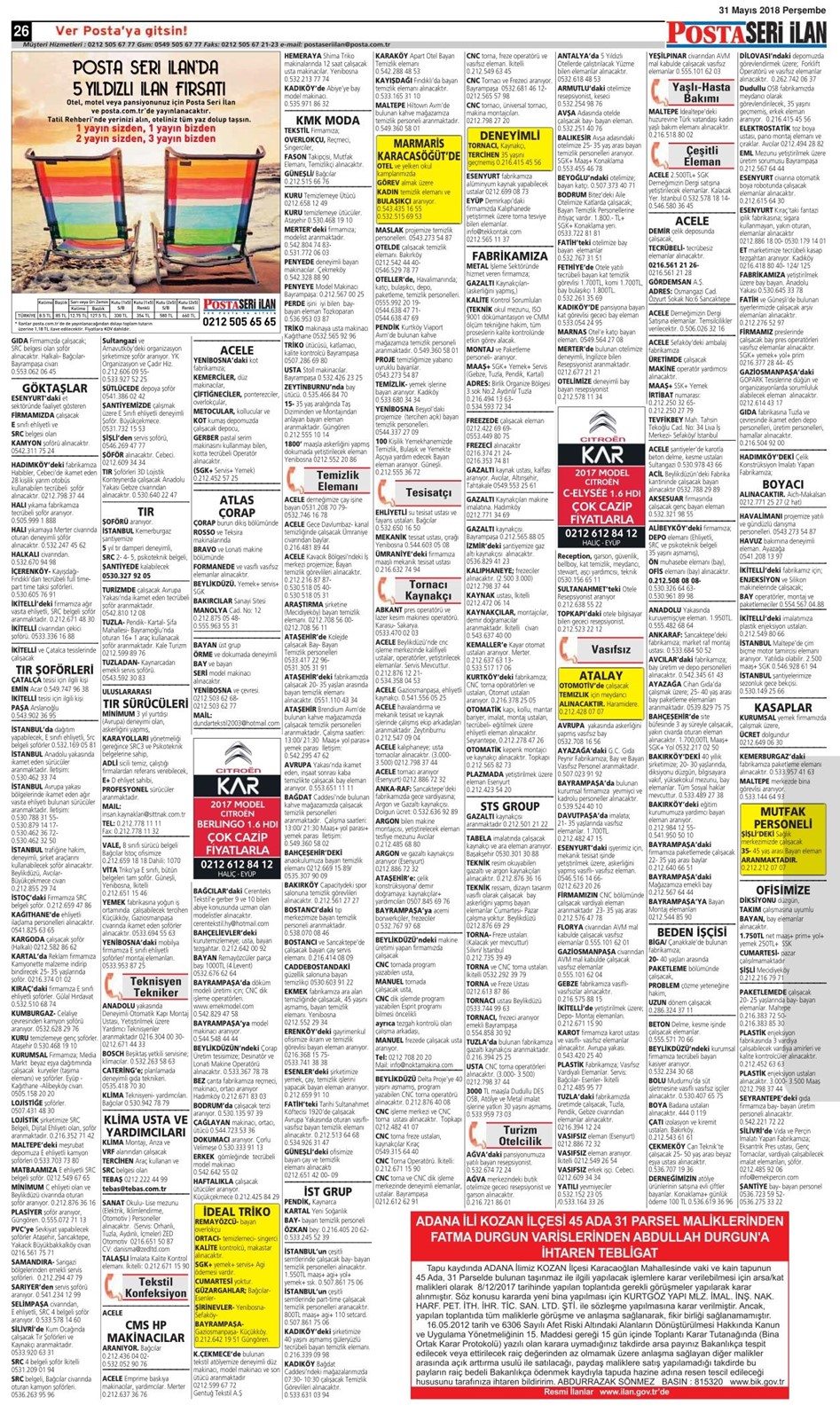 31 Mayıs 2018 Perşembe Posta İstanbul Baskısı Seri İlan Sayfaları Posta İstanbul Baskısı 31.05.2018-1 Posta İstanbul Baskısı 31.05.2018-2 Posta İstanbul Baskısı 31.05.2018-3 Posta İstanbul Baskısı 31.05.2018-4 Posted in Genel.