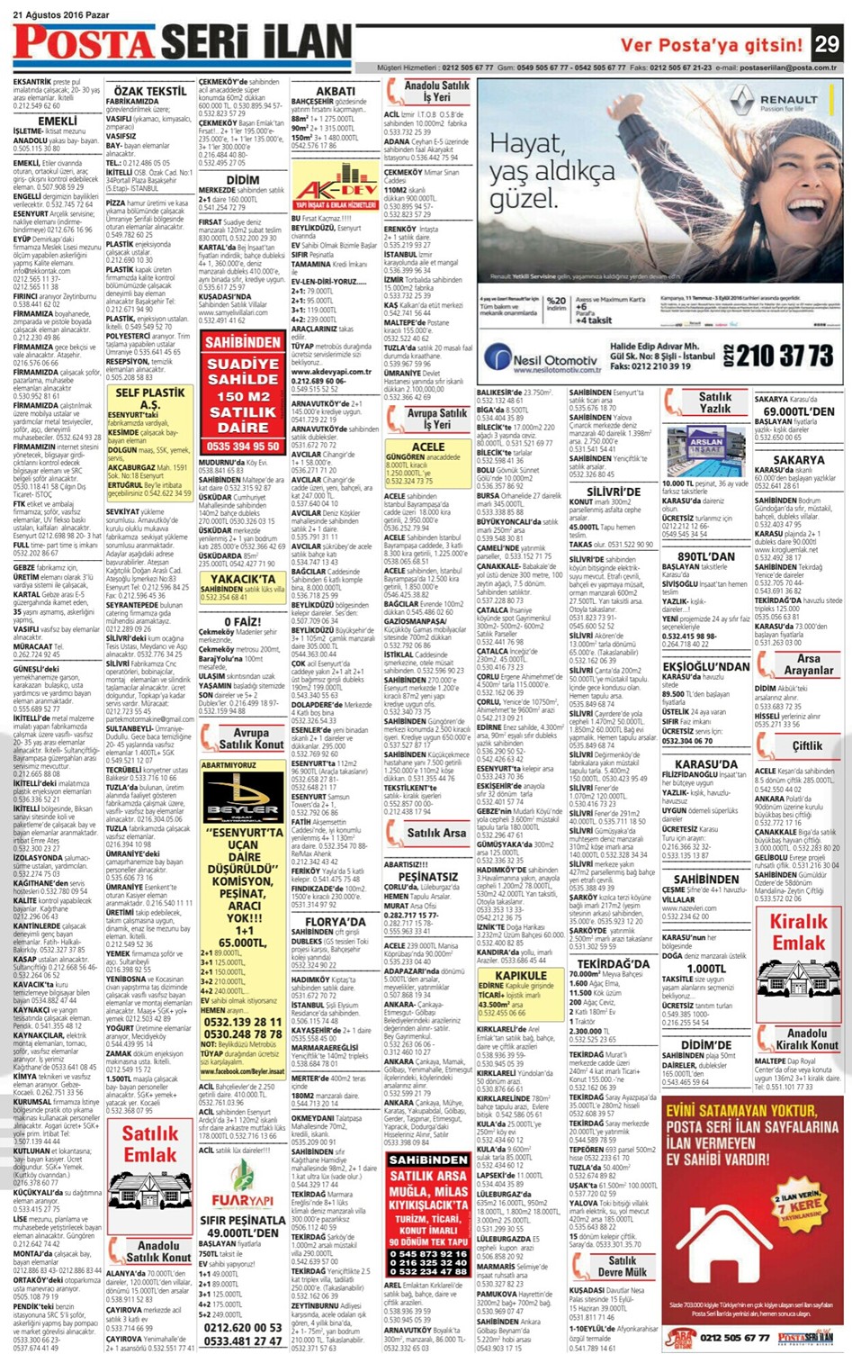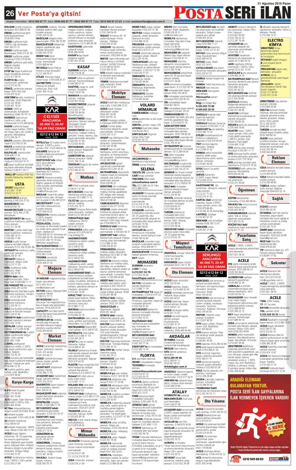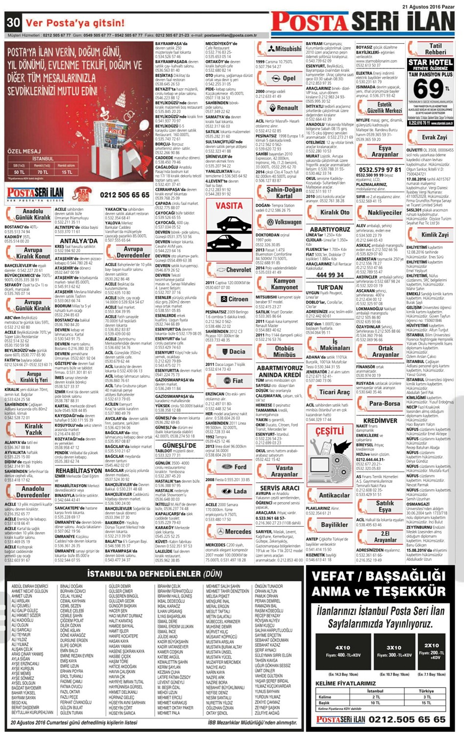 21.08.2016 Posta İstanbul Seri İlan Sayfaları