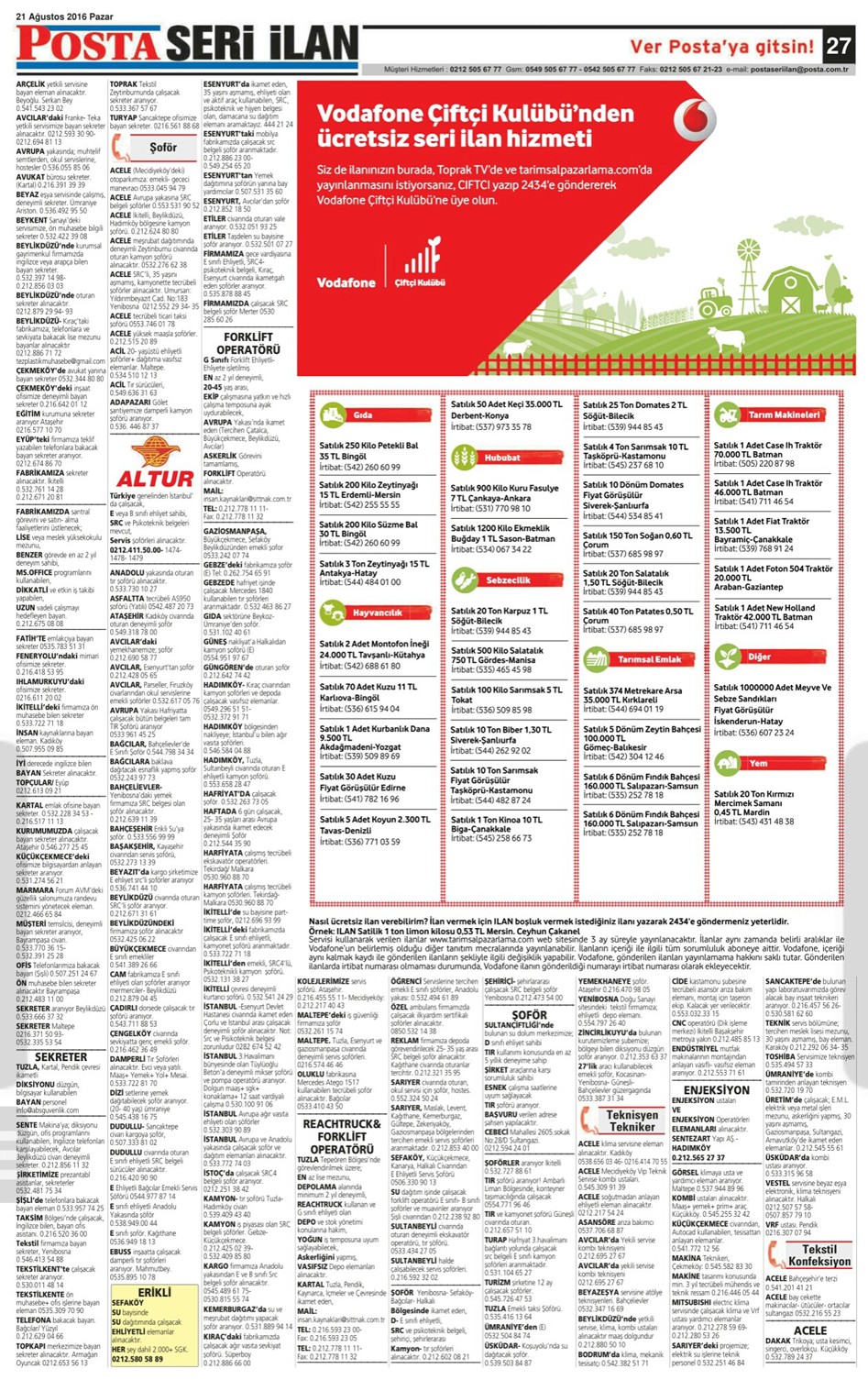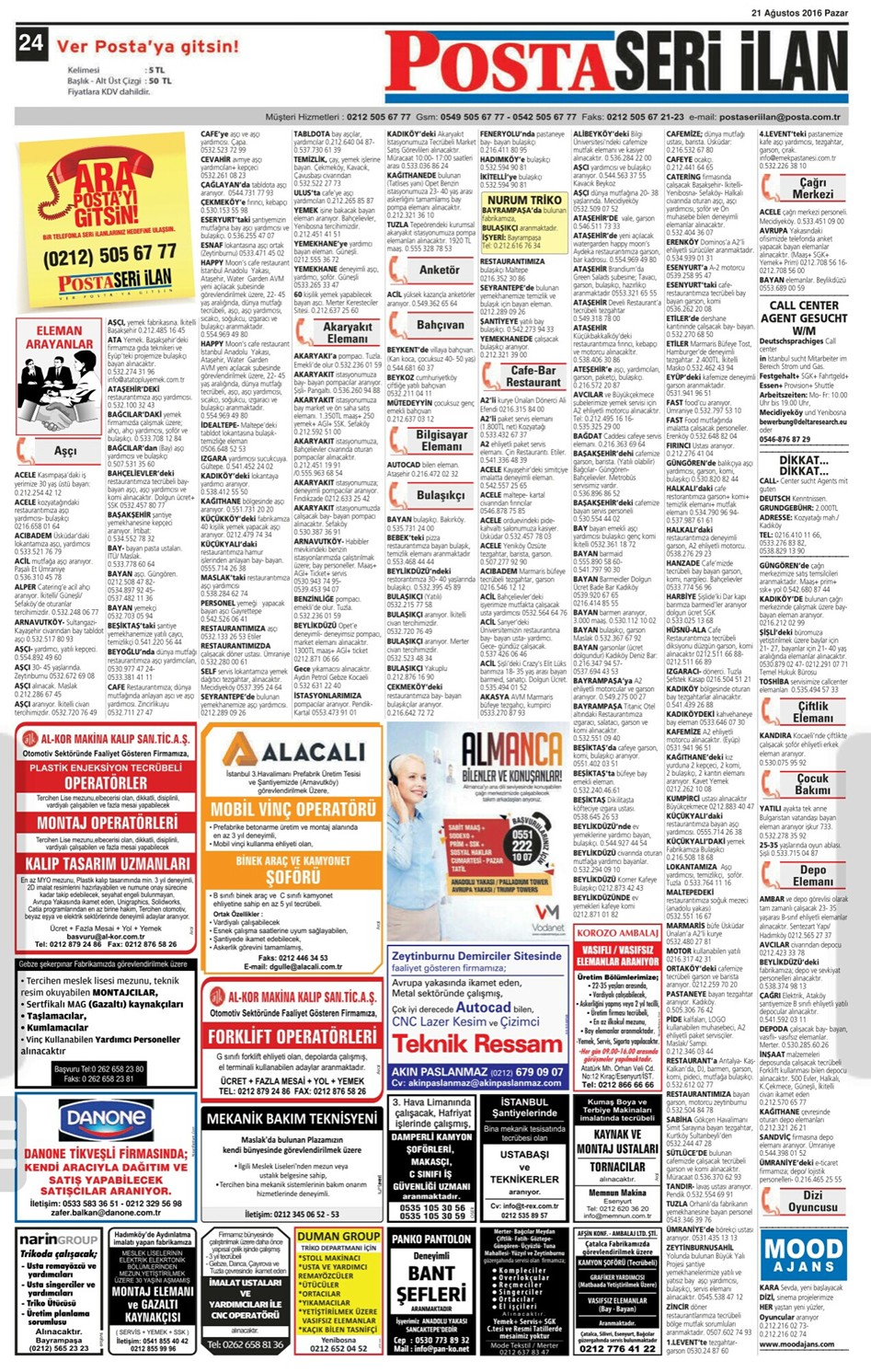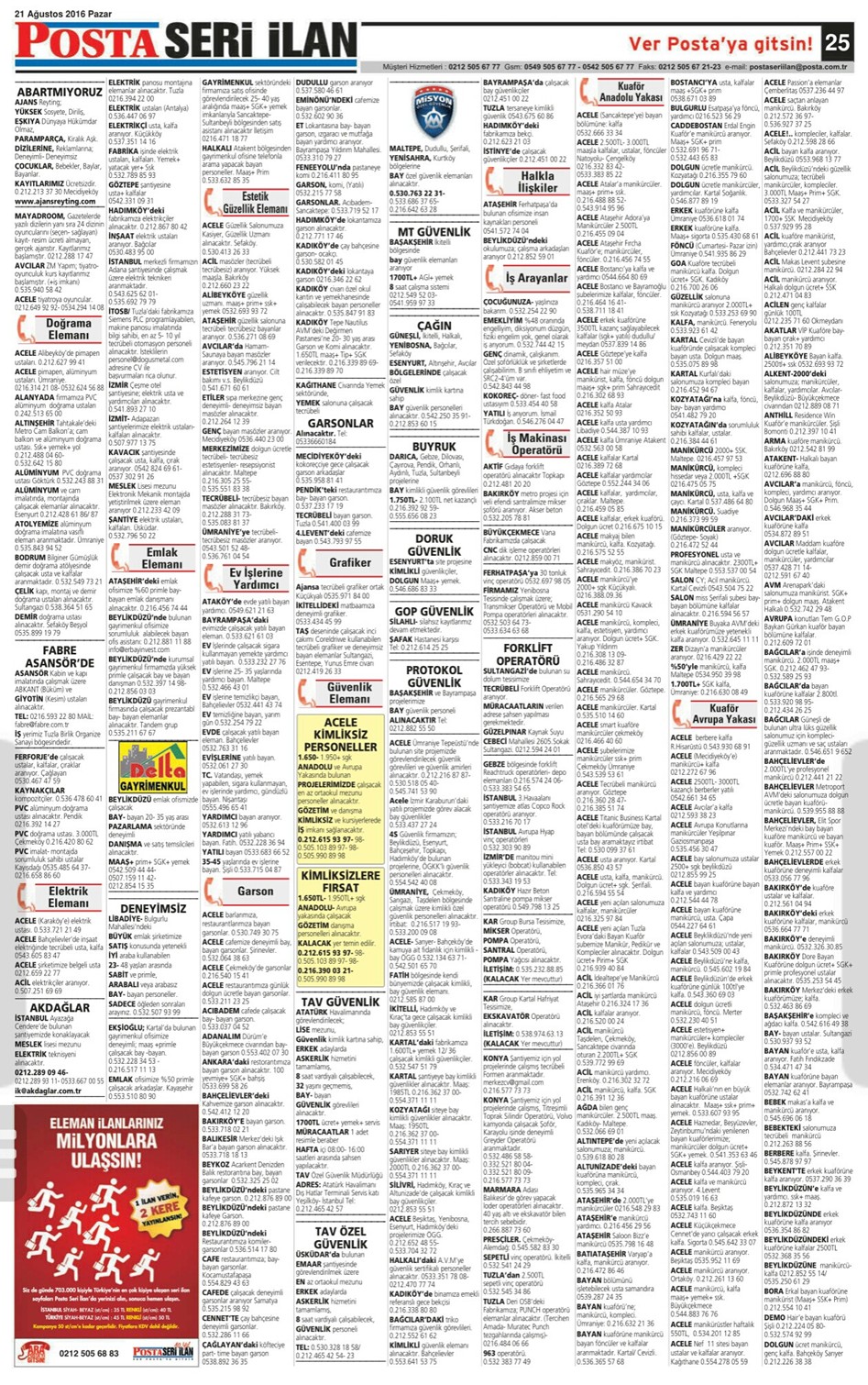 21.08.2016 Posta İstanbul Seri İlan Sayfaları