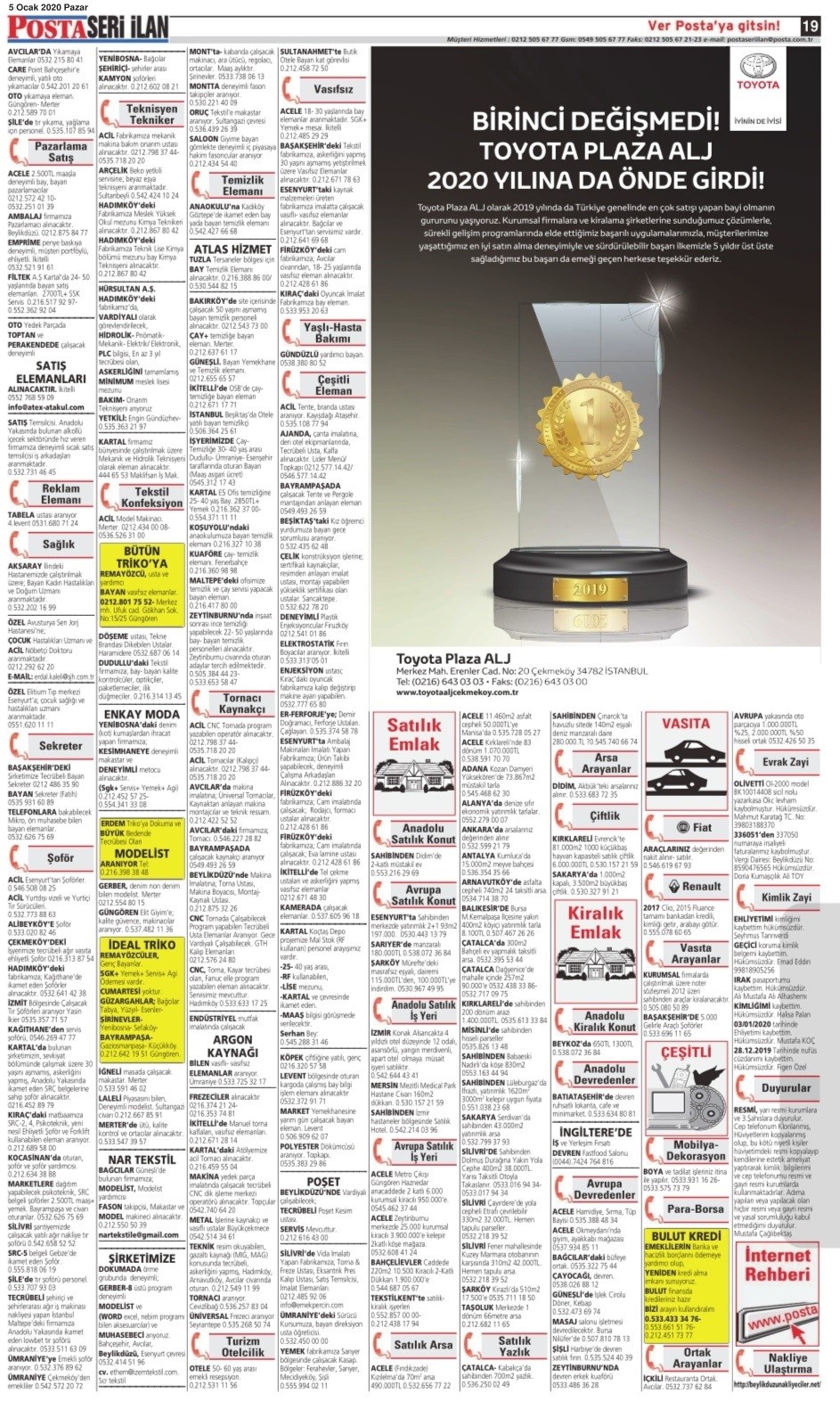 05 Ocak 2020 Pazar Posta İstanbul Baskısı Posta İstanbul Baskısı l 05.01.2020 – 1 Posta İstanbul Baskısı l 05.01.2020 – 2