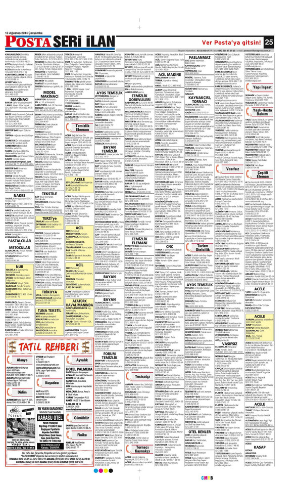 - Mesleki Eğitim, Ortak arayanlar, Para Borsa, Satılık Eşya, 2.El Arayanlar, Tatil Rehberi, Tarım, Diğer, Duyurular, Evrak Zayi, Eğlence Mekanları: Melissa Clup, Neco Türkü Evi, Zincirlikuyu Face Club, Keyf-i Diyar, Rakkas, Nosss Ataköy Marina, Civanım.