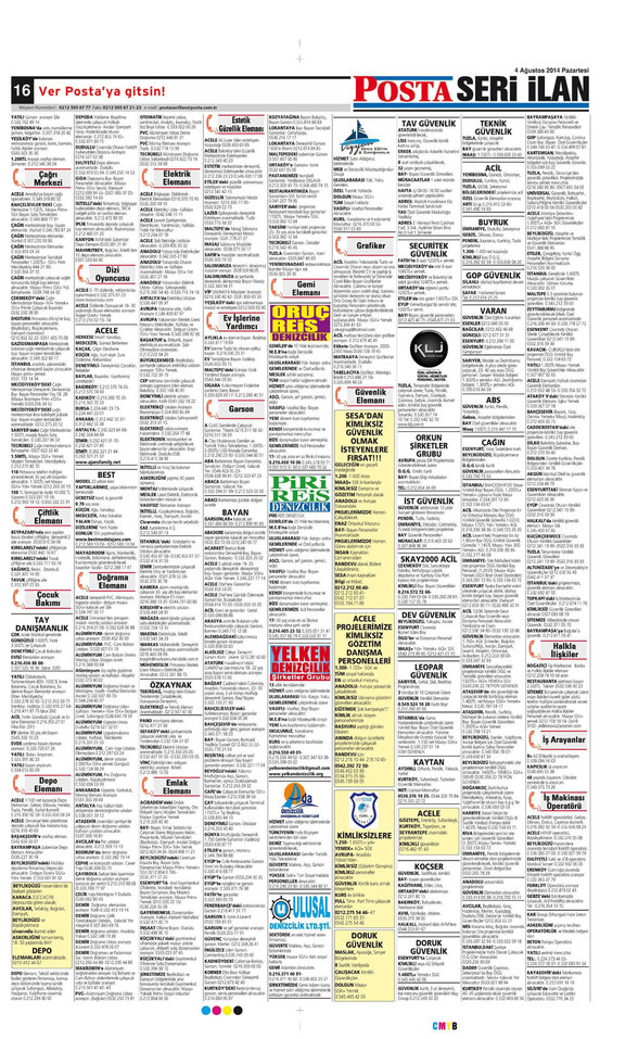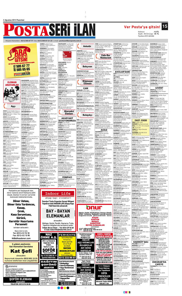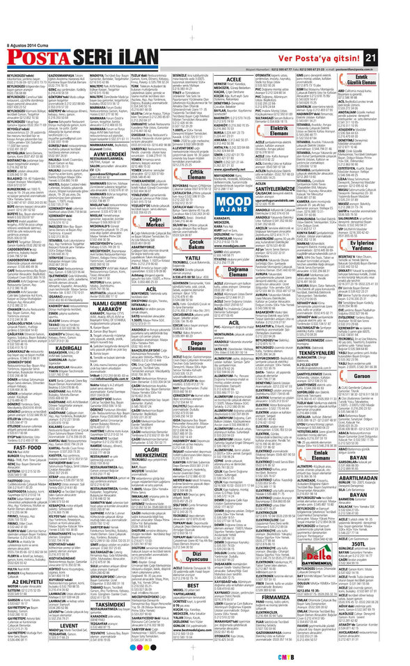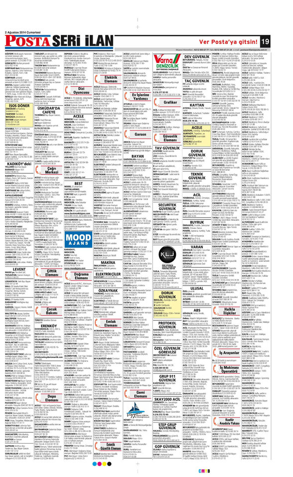 - Çerçeveli Eleman ilanları, Aşçı, Akaryakıt Elemanı, Anketör, Bahçıvan, Bilgisayarcı, Bulaşıkçı, Cafe Bar Restaurant,