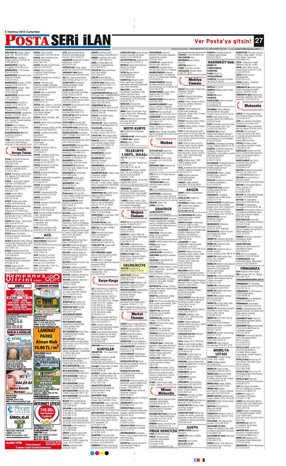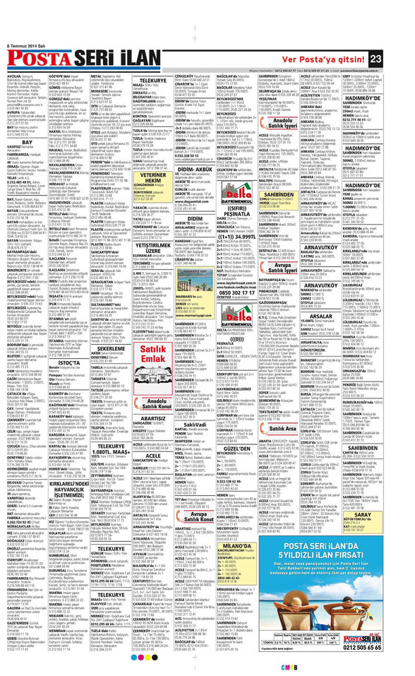 - Çeşitli Eleman, Satılık Emlak, Anadolu Satılık Konut, Avrupa Satılık Konut, Anadolu Satılık İşyeri, Avrupa Satılıık İşyeri, Satılık Arsa, Satılık Yazlık, Emlak Arayanlar, Arsa Arayanlar, Çiftlik, Kiralık Emlak, Anadolu Kiralık Konut,