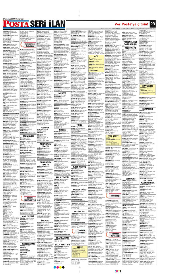 - 05.07.2017 Posta Çerçeveli Eleman İlanları