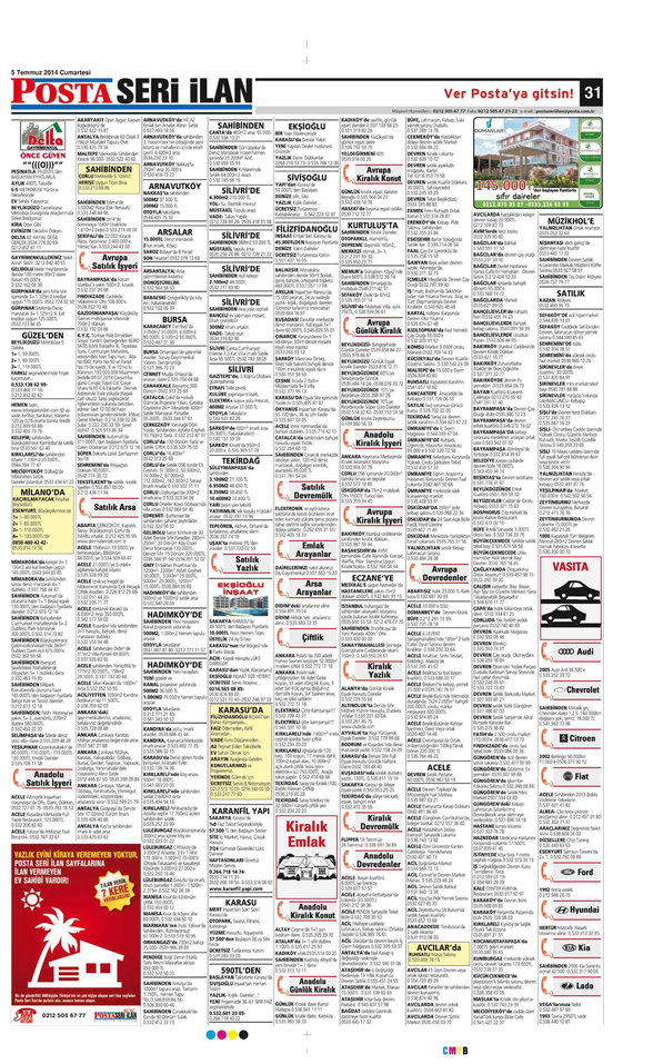 - Anadolu Satılık İşyeri, Avrupa Satılıık İşyeri, Satılık Arsa, Satılık Yazlık, Emlak Arayanlar, Arsa Arayanlar, Çiftlik, Kiralık Emlak, Anadolu Kiralık Konut, Avrupa Günlük Kiralık, Avrupa Kiralık Konut, Anadolu Kiralık İşyeri, Avrupa Kiralık İşyeri, Kiralık Arsa, Kiralık Yazlık, Kiralık Devremülk, Anadolu Devredenler, Avrupa Devredenler, Vasıta, Audi, Citroen, Fiat, Ford, Hyundai, Kia, Lada