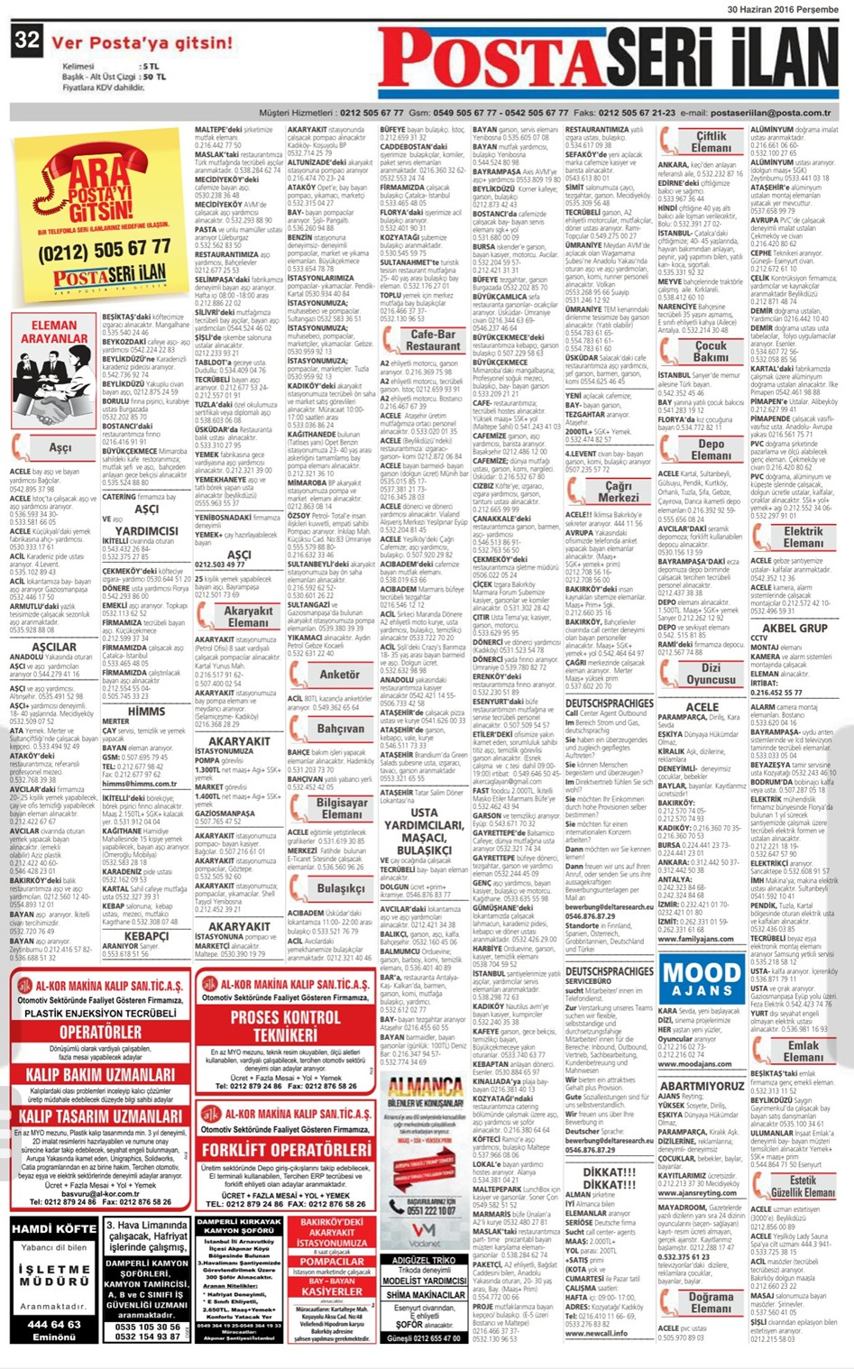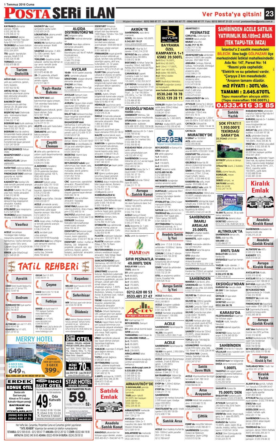 01.07.2016 Posta İstanbul Seri İlan Sayfaları Posted in Bugünkü Posta seri ilanlar, Posta İlan Sayfaları.