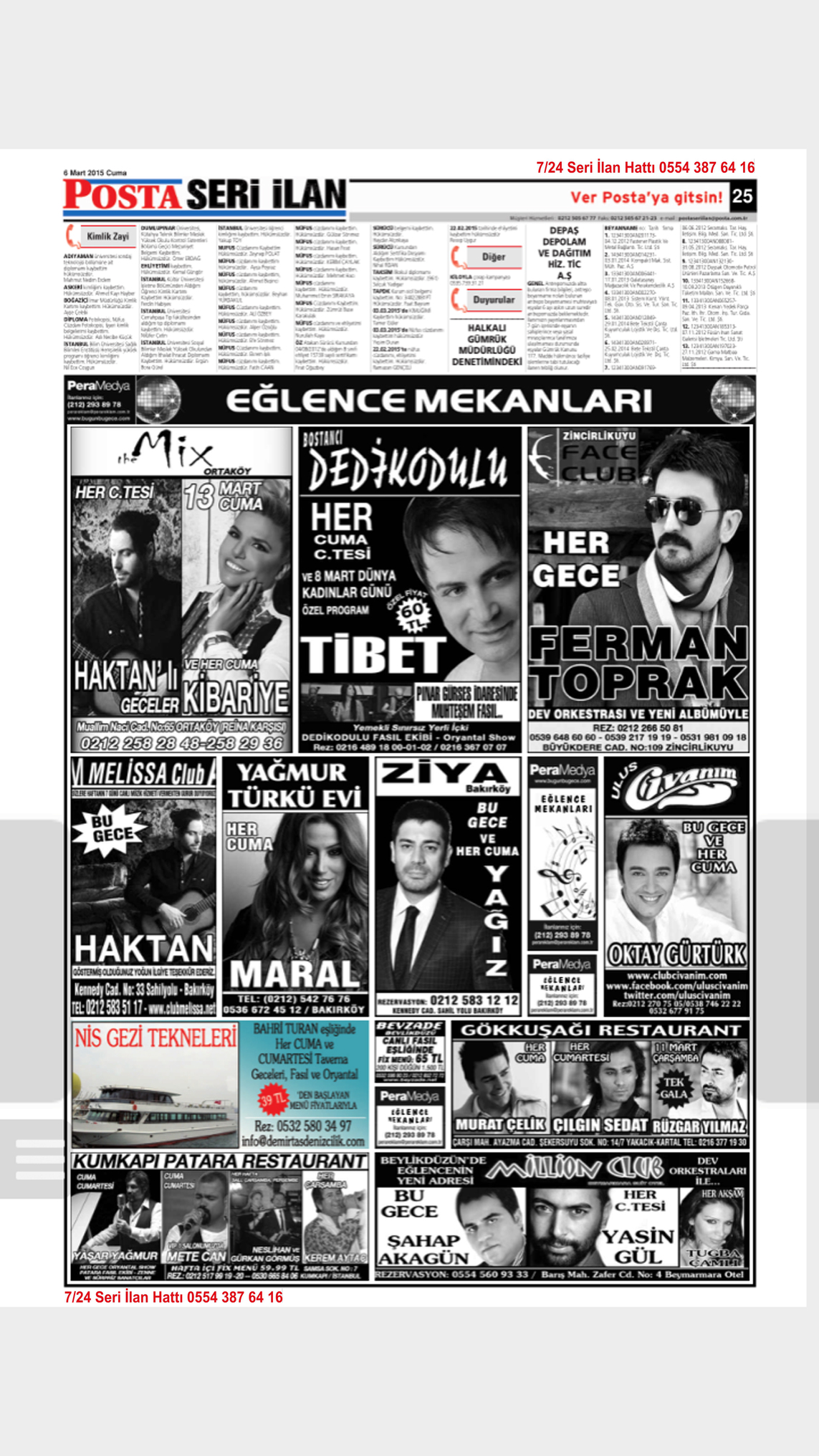 Diğer ilanları, Duyuru ilanları, Kimlik Kayıp (Zayi) İlanları, Evrak Kayıp (Zayi) ilanları, Eğlence Mekanları İlanları
