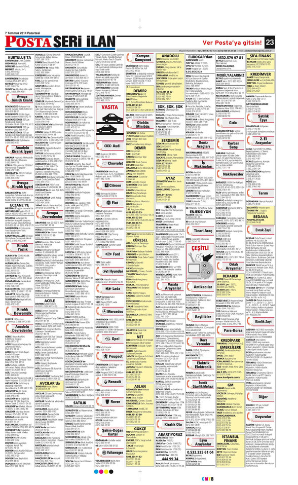 Vasıta, Aodi, Citroen, Fiat, Ford, Hyundai, Kia, Mazda, Mercedes, Opel, Renault, Rover, Şahin, Doğan, Kartal, Kamyon, Kamyonet, Otobüs Minibüs, Vasıta arayanlar, Kiralık Oto, Oto Gaz, Diğer Vasıta, İş Makinaları, Çeşitli, Antikacılar, Bayilikler, Ders verenler, Estetik Güzellik Merkezi, Eşya Arayanlar,Evcil Hayvamlar, Nakliyeciler,Mesleki Eğitim, Ortak arayanlar, Para Borsa, Satılık Eşya, 2.El Arayanlar, Tatil Rehberi, Tarım, Diğer, Duyurular, Evrak Zayi,