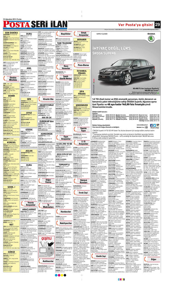 16.08.2014 Posta İlan SAyfaları
