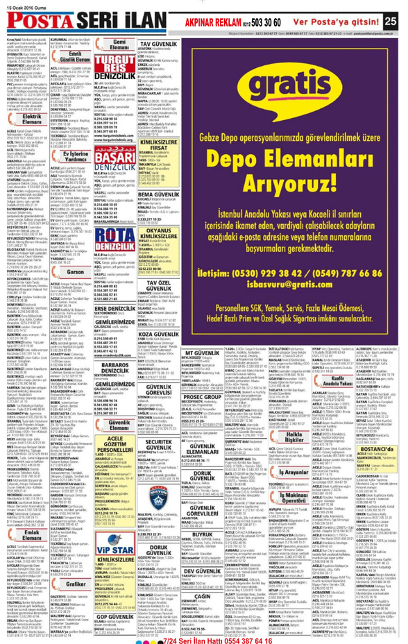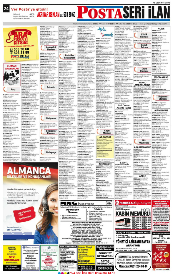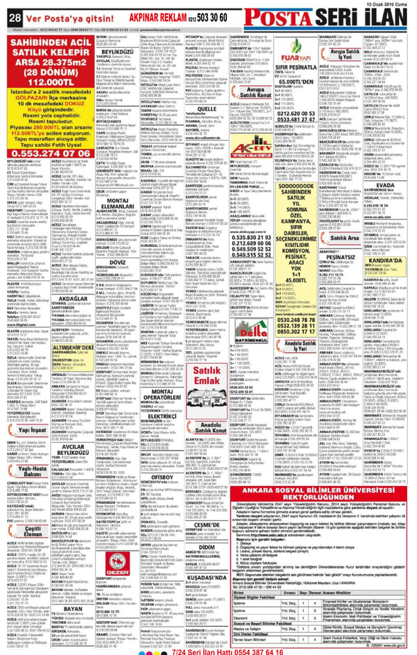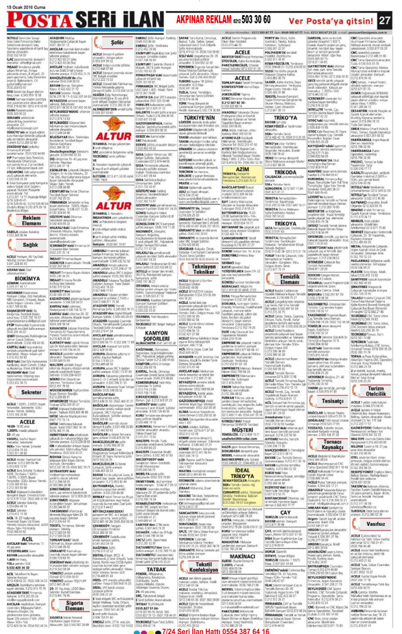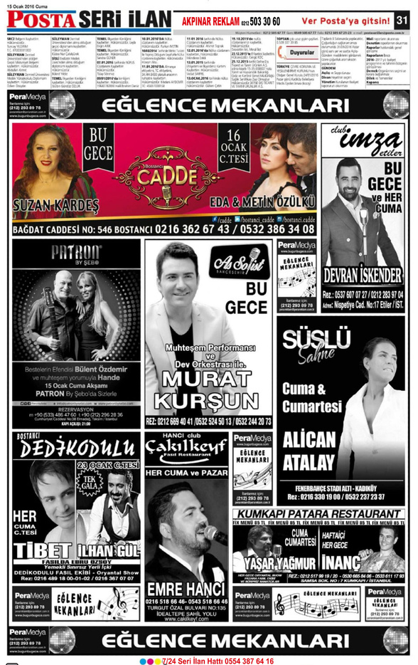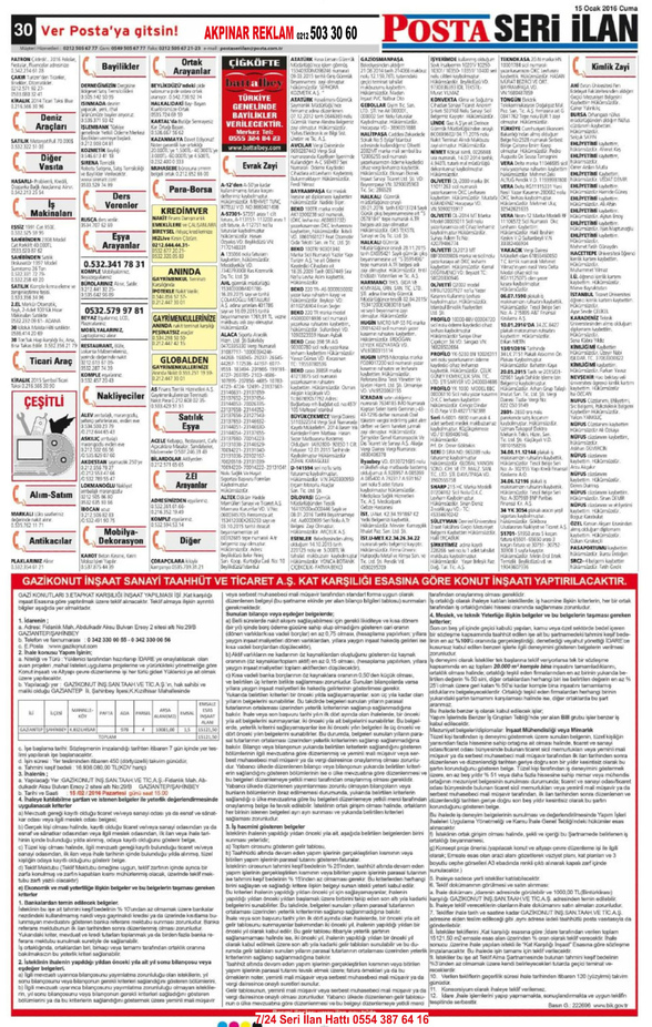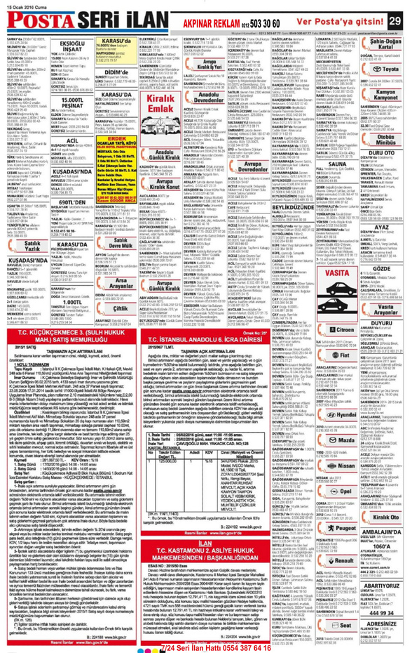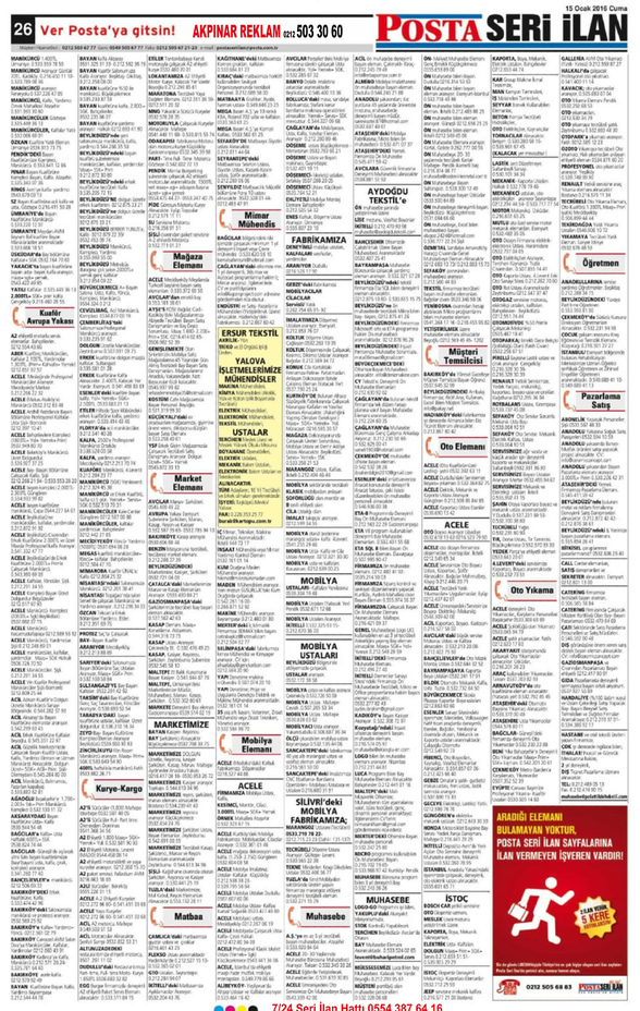 15 Ocak 2016 Posta İstanbul Bu günkü Seri İlan Sayfaları