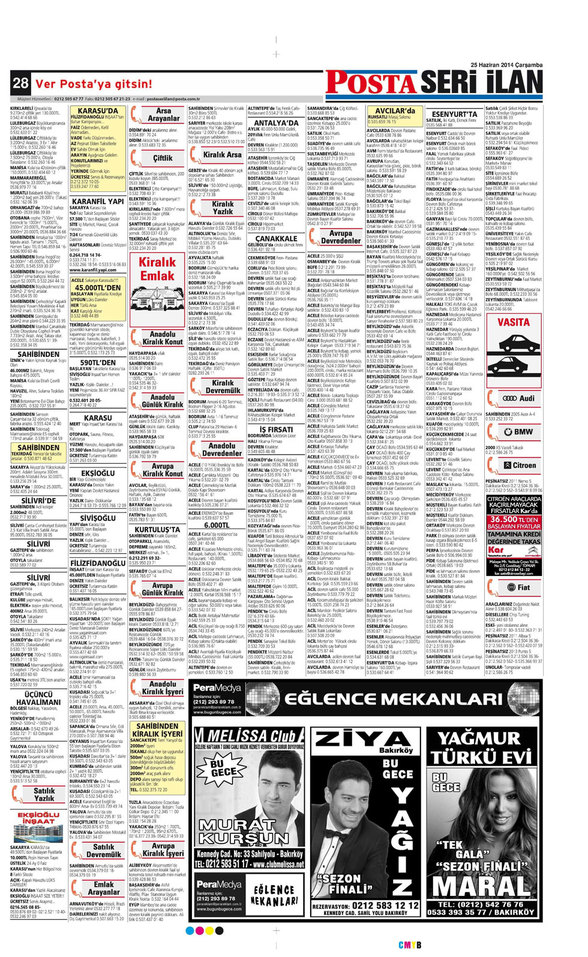 Vasıta, Aodi, Citroen, Fiat, Eğlence Mekanları, Ziya, Yağmur Türküevi, Melisa Club