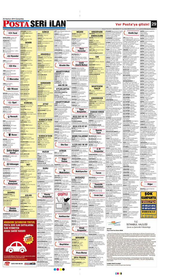 Ford, Hyundai, Kia, Mazda, Mercedes, Opel, Renault, Rover, Şahin, Doğan, Kartal, Kamyon, Kamyonet, Otobüs Minibüs, Vasıta arayanlar, Kiralık Oto, Oto Gaz, Diğer Vasıta, İş Makinaları, Çeşitli, Antikacılar,Batilikler, Ders verenler, Estetik Güzellik Merkezi, Eşya Arayanlar,Evcil Hayvamlar, Nakliyeciler,Mesleki Eğitim, Ortak arayanlar, Para Borsa, Satılık Eşya, 2.El Arayanlar, Diğer, Duyurular, Evrak Zayi, Kimlik Zayi