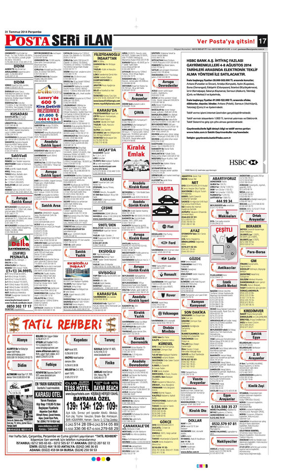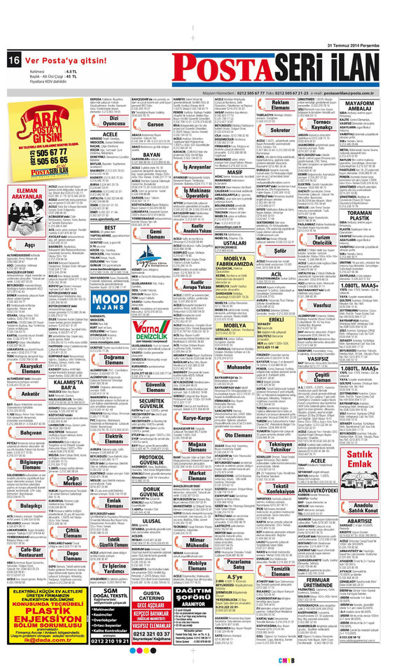 31.07.2014 Posta İlan Sayfaları